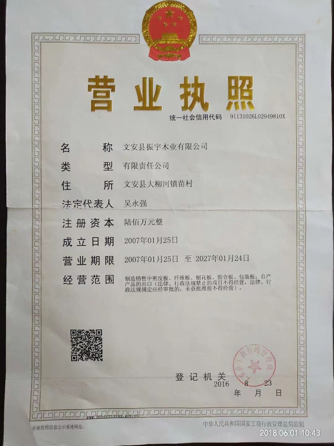 文安縣振宇木業(yè)有限公司位于文安縣大柳河鎮(zhèn)苗村文左公路南側(cè),交通便利,地理位置優(yōu)越,占地面積60000多平方米,于2003年3月籌建,2004年1月投產(chǎn),開(kāi)始稱(chēng)“文安縣振宇中密度板廠(chǎng)”,2007年1月改為“文安縣振宇木業(yè)有限公司”。 …